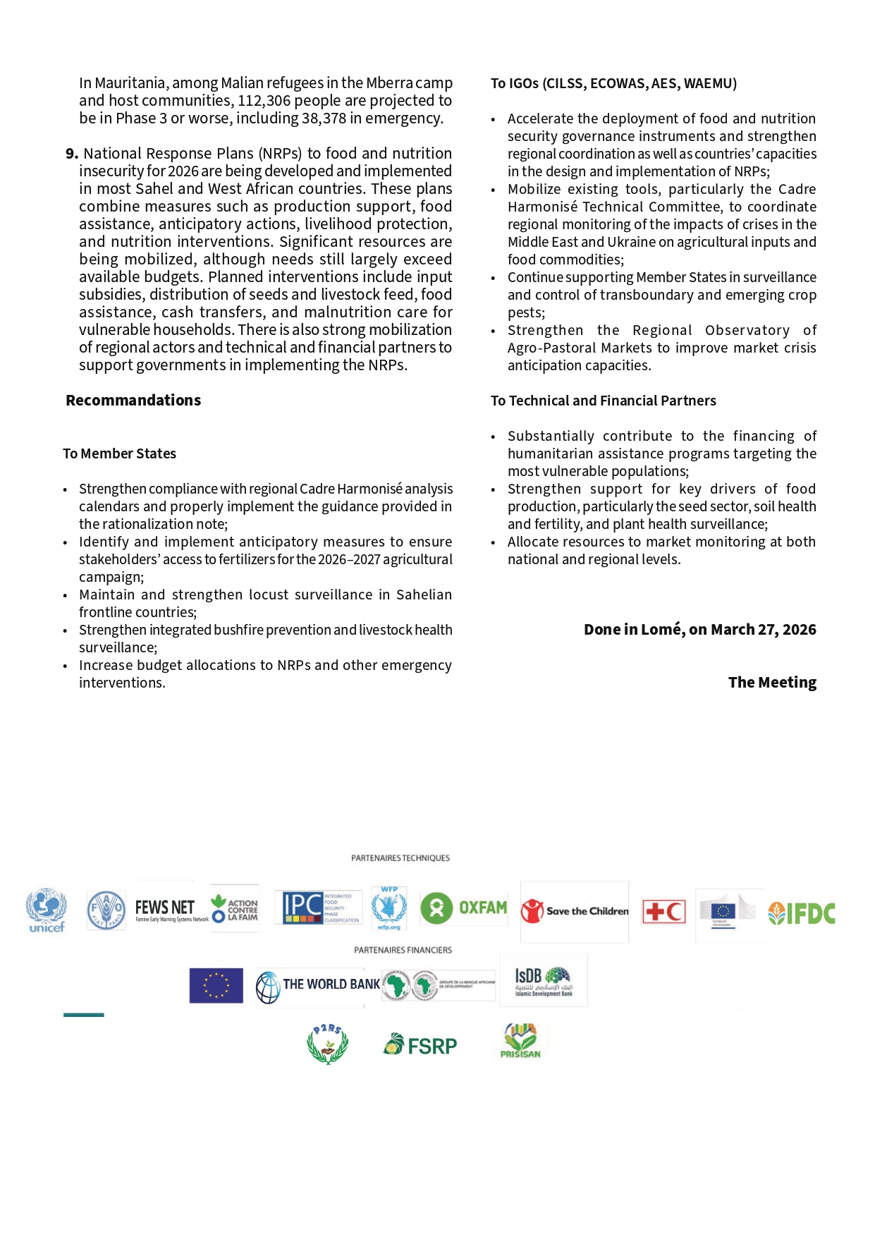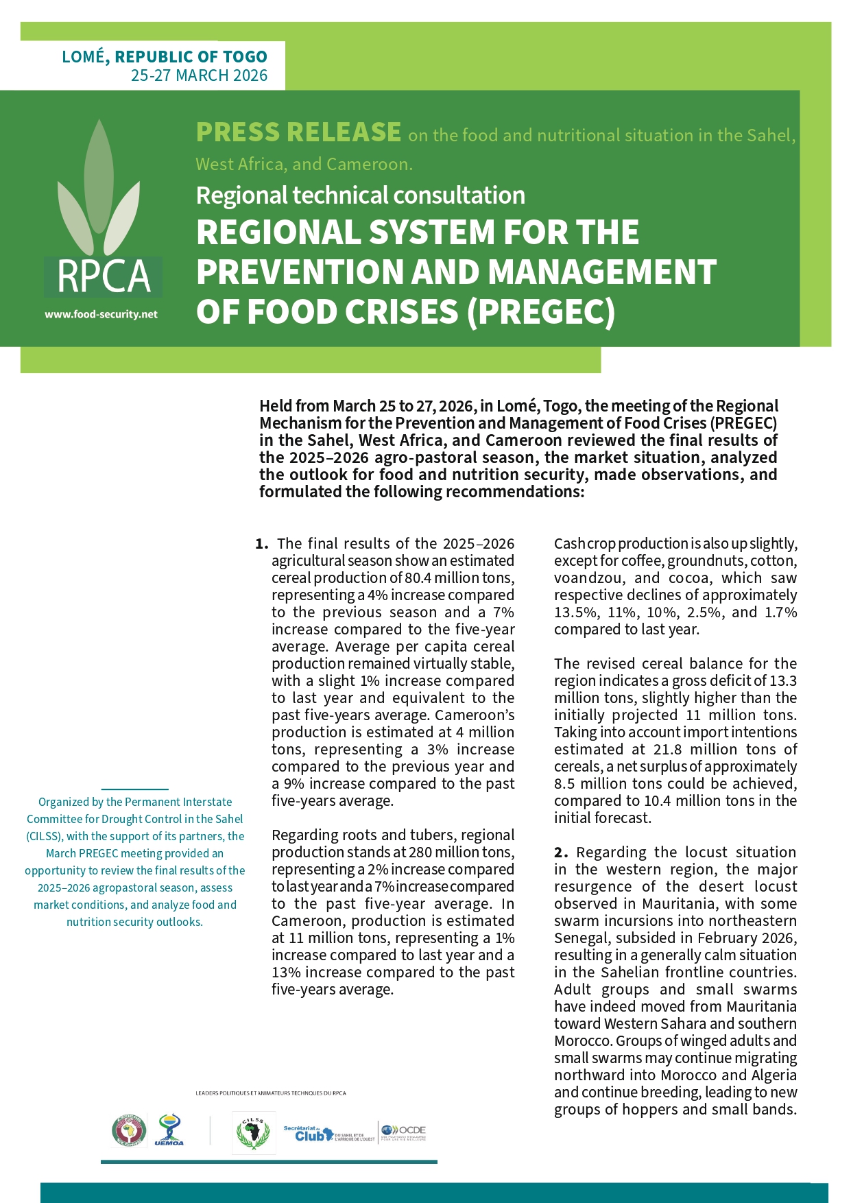 PRESS RELEASE on the food and nutritional situation in the Sahel, West Africa, and Cameroon.